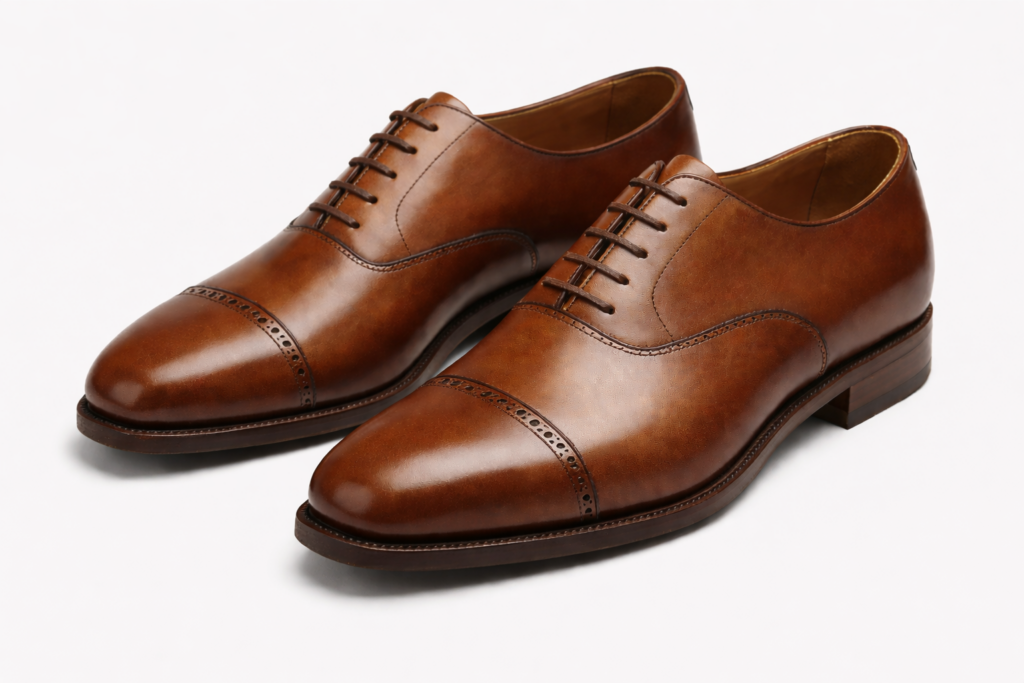 ③ 茶色の革靴(内羽根のパンチドキャップトゥ)